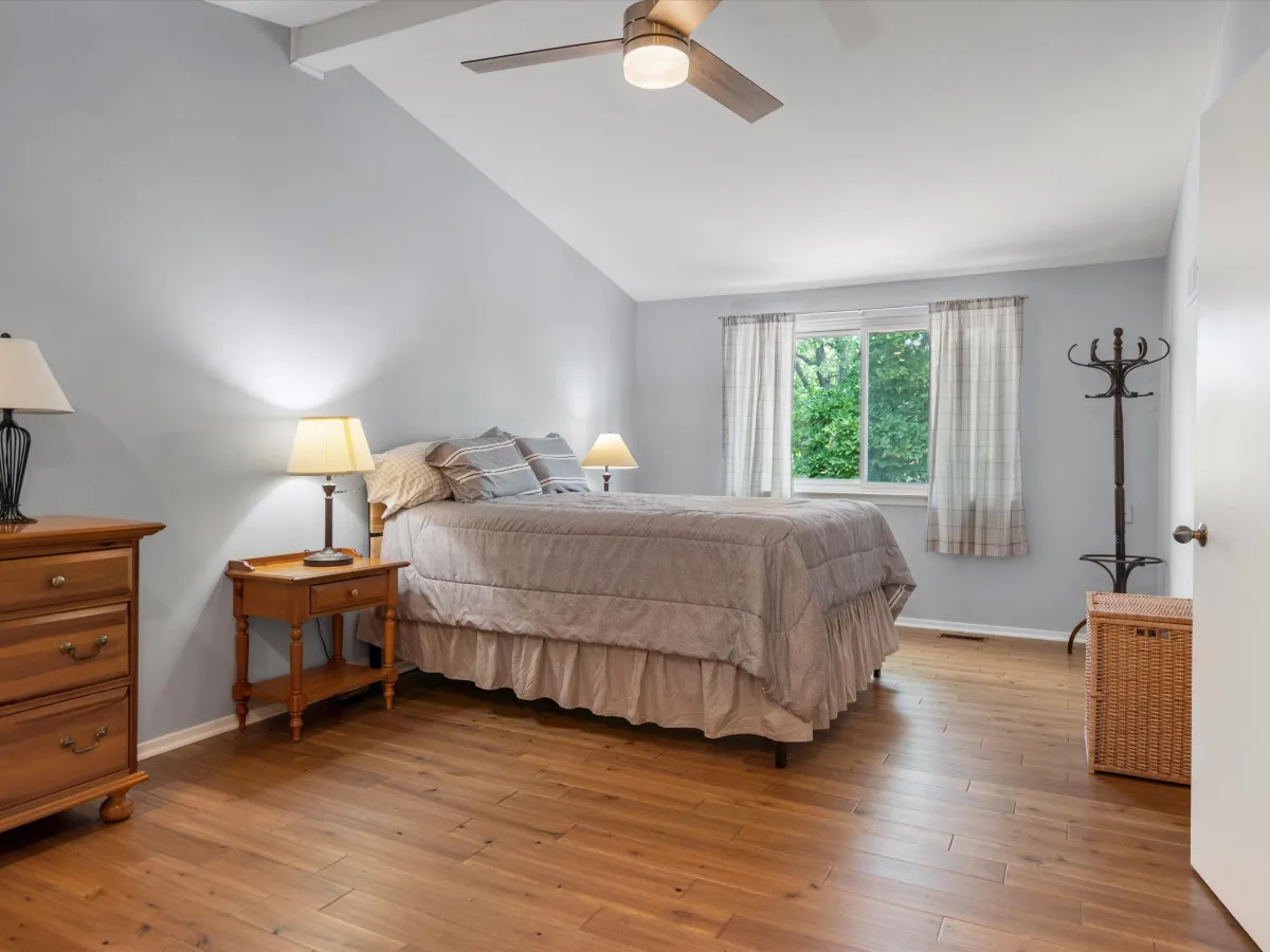 Ample closets, walk‑in shower, and large soaking tub.